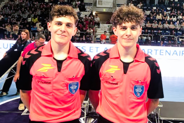 Nous nous appelons Jules et Jean BOURRIER. Nous avons 17 ans et nous sommes jumeaux. Nous nous sommes lancés dans l’arbitrage car notre club, Handball Langres, recherchait des arbitres JAJ CLUB. Le président nous a donc incités à prendre le sifflet assez jeunes, sur des plateaux de moins de 9 ans, vers l’âge de 10 ans.