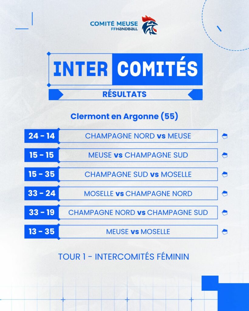 Voici les informations concernant le 1er Tour Régional des Intercomités Féminins.