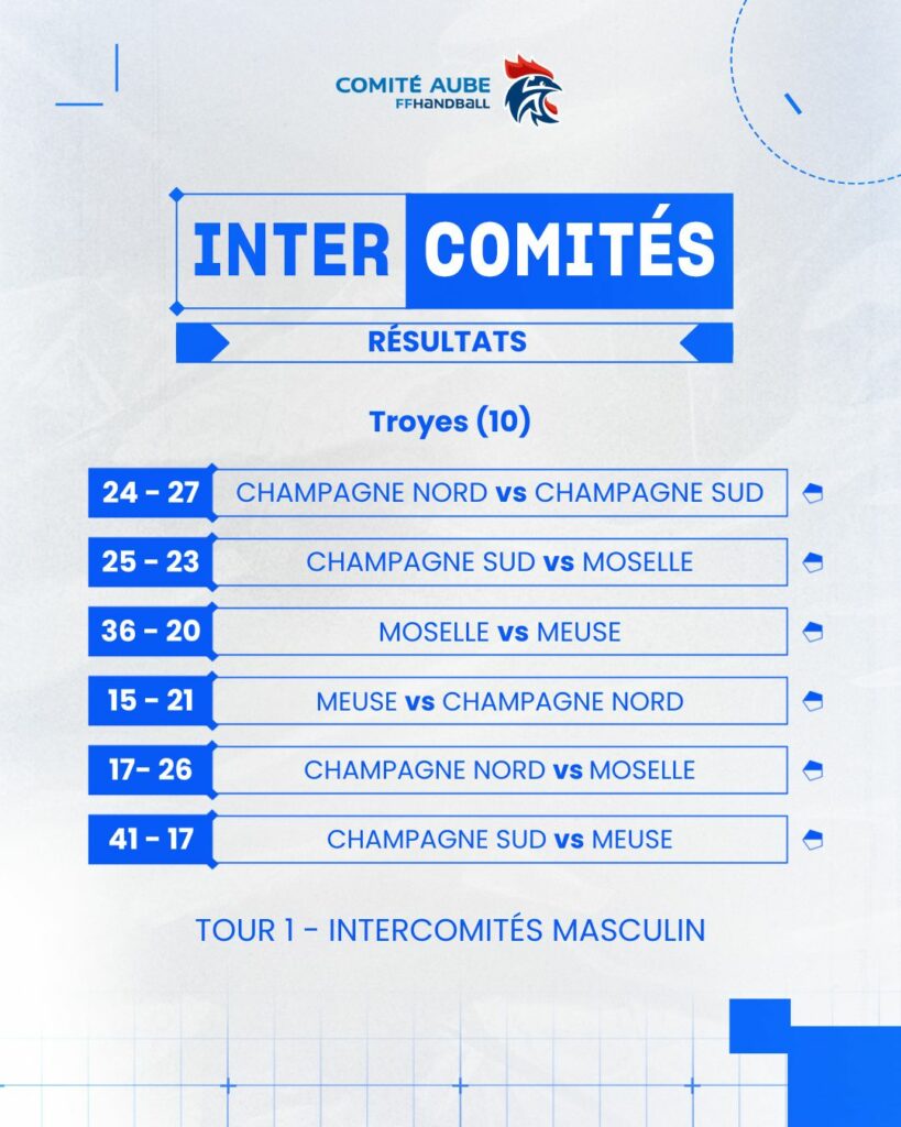 Voici les informations concernant le 1er Tour Régional des Intercomités Masculins.